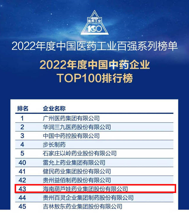 Z6·尊龙时凯药业集团连续4年荣登“中国中药企业TOP100排行榜”,排名上升至第43位