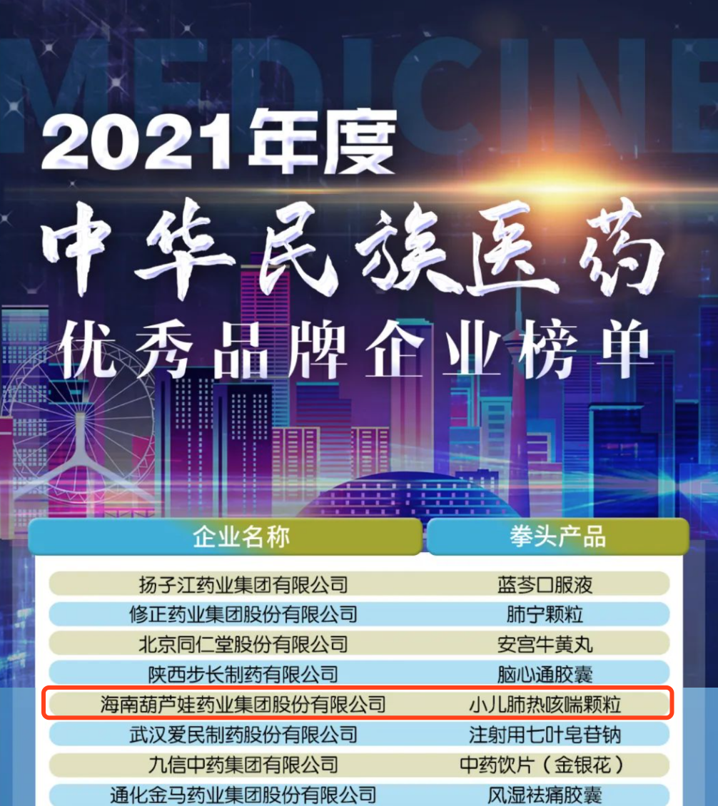12月29日,全国工商联医药业商会发布了“2021年度中华民族医药优秀品牌企业榜单”,Z6·尊龙时凯药业集团凭借黄金单品小儿肺热咳喘颗粒(4克)实力登榜。